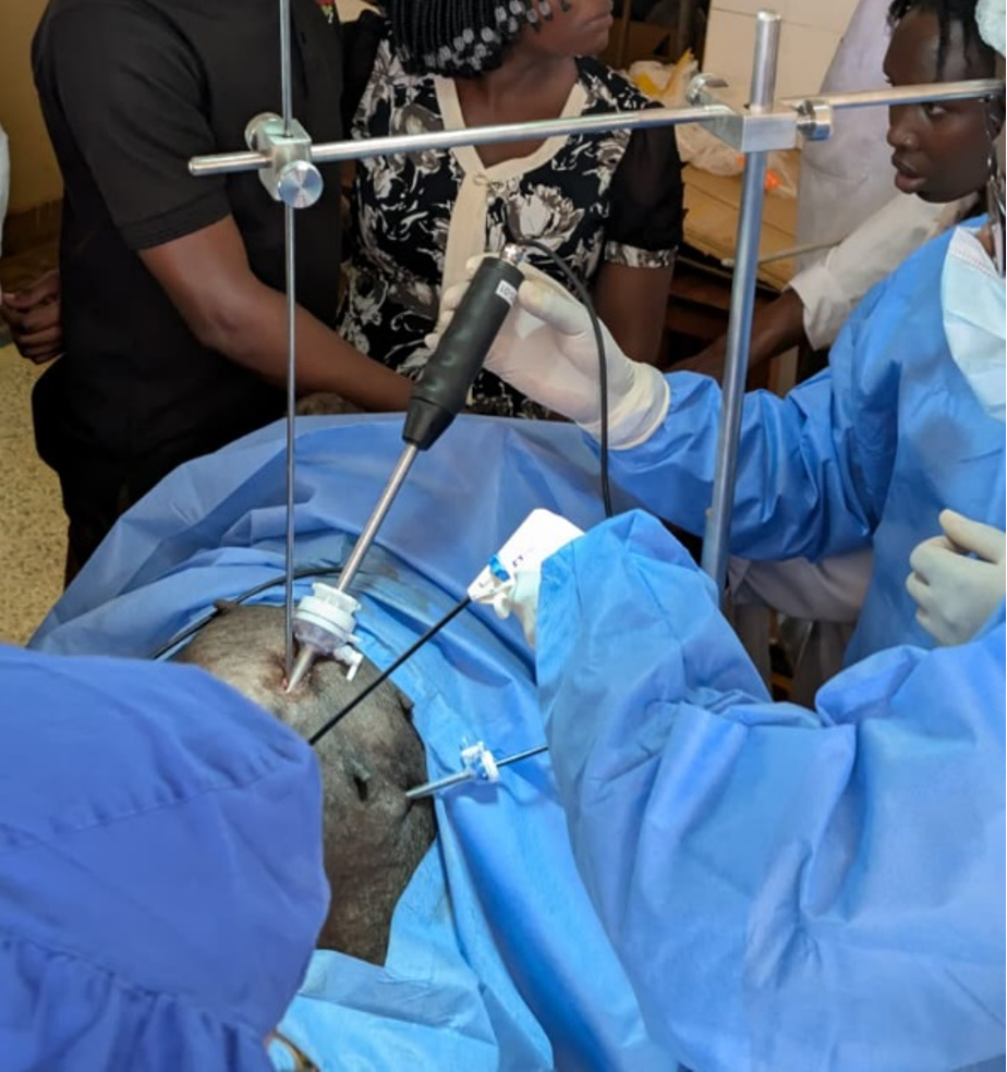 The KeySuite Laprascopic system undergoing wet lab testing at the College of Veterinary Medicine at Makerere University.